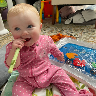 She is growing up not fast or slow, but in her own quirky way. Her first teeth came in a little later than most. It was the bottom front two per usual, but they pierced through her gums as though they slept in and needed to sprint to make it out in time. One day she was gummy. The next, they were there. She isn’t crawling but scooting backwards and everywhere. In her last week of daycare they found her stuck in a corner because she'd scooted to the other side of the room and couldn't move forward. She can stand on two sturdy legs for about 5 seconds. When lying down she loves to grab the nearest pole (chair leg, table leg, etc.), kick her legs up, point her toes, and move em up and down to put on a show. Her Daddy calls this her Pink Pony Club. We’re just trying to be progressive and supportive parents of our child’s unique lifestyle.
